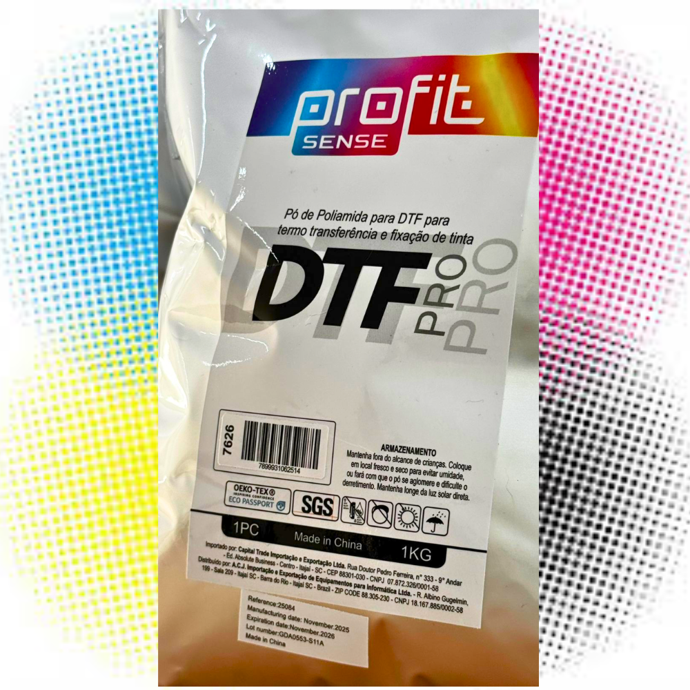 TPU para DTF Profit Sense desenvolvido para máxima aderência, elasticidade e durabilidade nas transferências têxteis. Possui granulometria uniforme, fusão estável e acabamento macio, garantindo estampas de alta qualidade em algodão, poliéster e tecidos mistos.